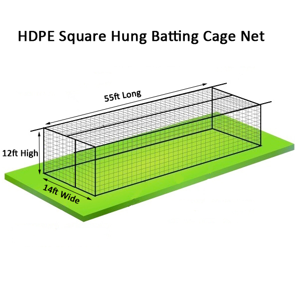 HDPE Baseball Batting Cage Nets 55ft x 12ft x 12ft